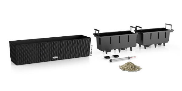 • do zawieszenia na balustradę • 3 dostępne kolory • na zewnątrz • wbudowany system nawadniania • struktura technorattanu