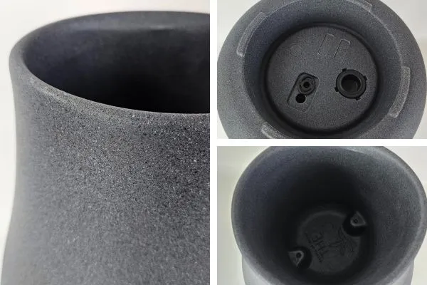 Der Topf hat markierte Bereiche für selbstbohrende Entwässerungslöcher. Außerdem befinden sich im Boden des Topfes abgedichtete Gummistopfen, so dass Sie ihn leicht an Ihre Bedürfnisse anpassen können - Abdichtung im Innenbereich, Abfluss des Wasserspiels, der Topf steht im Garten oder auf der Terrasse.