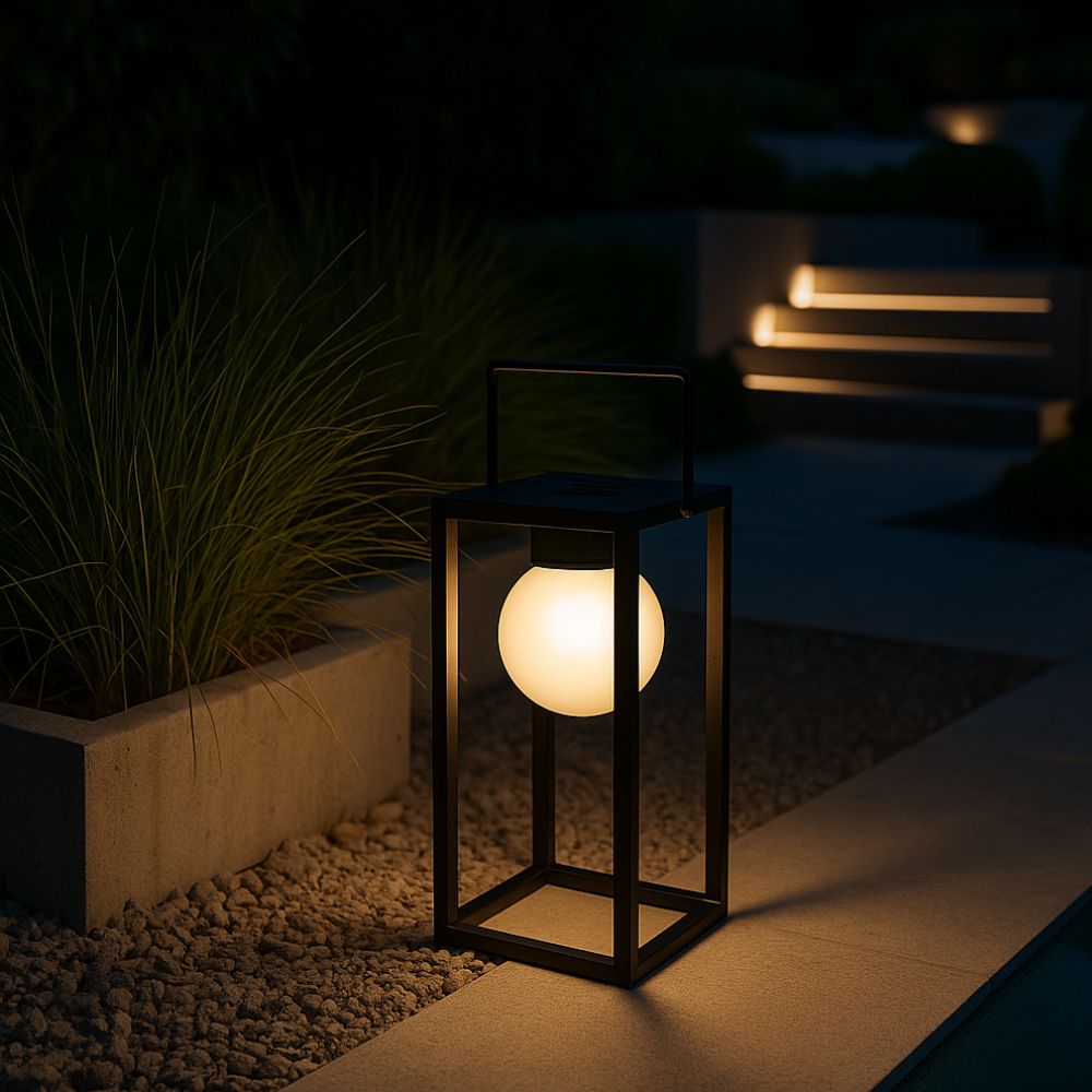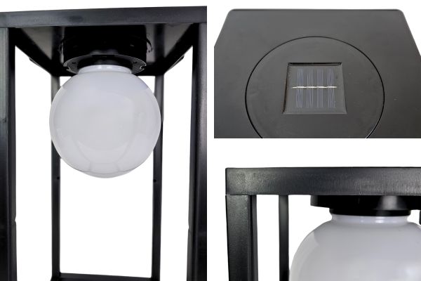 Die Solarlampe ist die perfekte Kombination aus eleganter Form und ökologischer Beleuchtungslösung. Das Design, das auf einem geometrischen Rahmen in Schwarz basiert, verbirgt einen subtilen plastikkolben, der ein angenehmes Licht abgibt. Diese wird durch ein oben angebrachtes Solarpanel ergänzt, das Strom liefert, ohne dass ein Stromanschluss erforderlich ist.